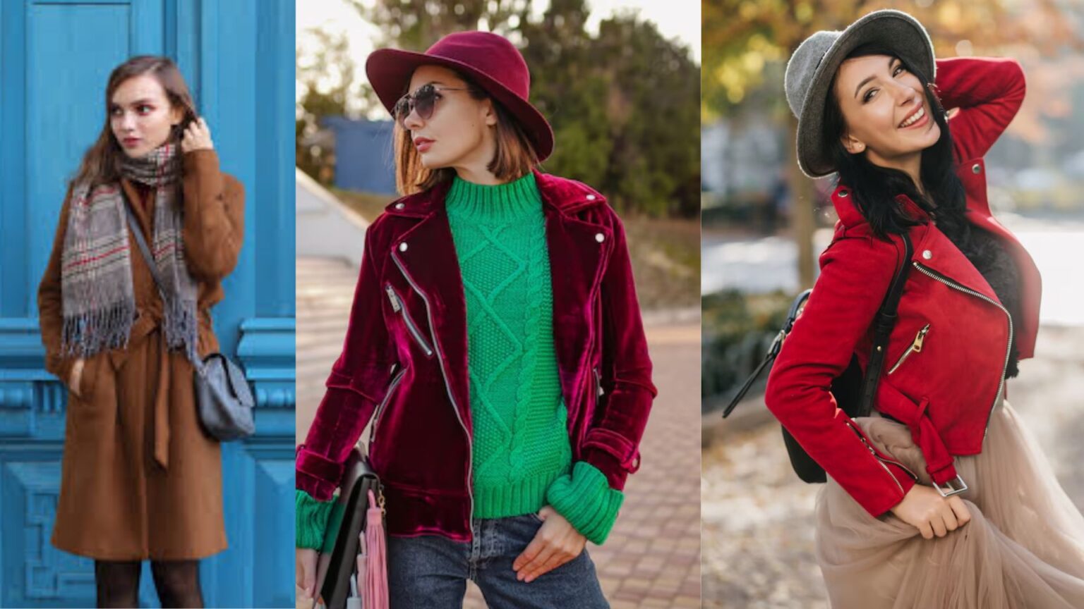 Já o segundo aposta na monocromia em tons terrosos, usando o cachecol da mesma cor das peças. Essa escolha transmite sofisticação sem esforço, mesmo quando os itens são básicos, uma ótima pedida para quem quer um visual elegante sem exageros.